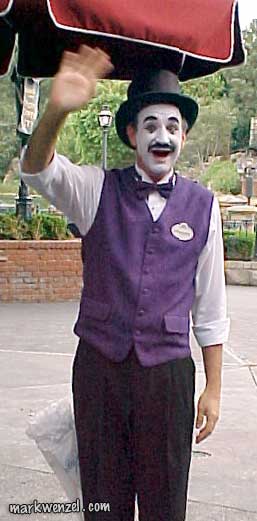 One of the highlights of Mark's career was performing at Disneyland for seven years. Many fans will remember him as a fixture in New Orleans Square, always ready to help celebrate a special event or even answer a question or provide directions - all done without saying a word, of course. Mark's character name, "Lagniappe" (pronounced Lan-yap), is a Cajun word that translates roughly as, "a little more," or "something extra," as in the thirteenth doughnut of a baker's dozen. |